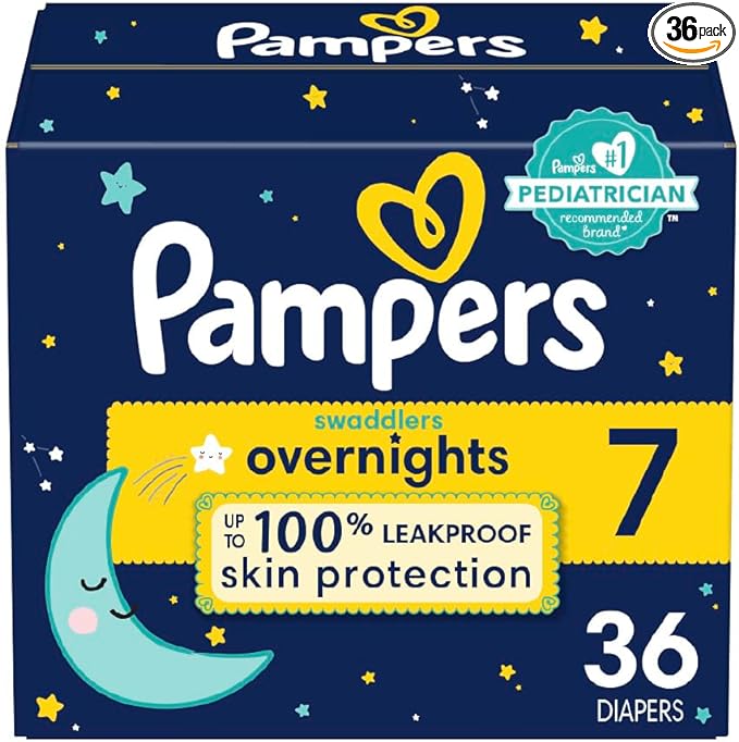 Pampers Swaddlers Overnights Diapers – Size 7, 36 Count, Disposable Baby Diapers, Night Time Skin Protection