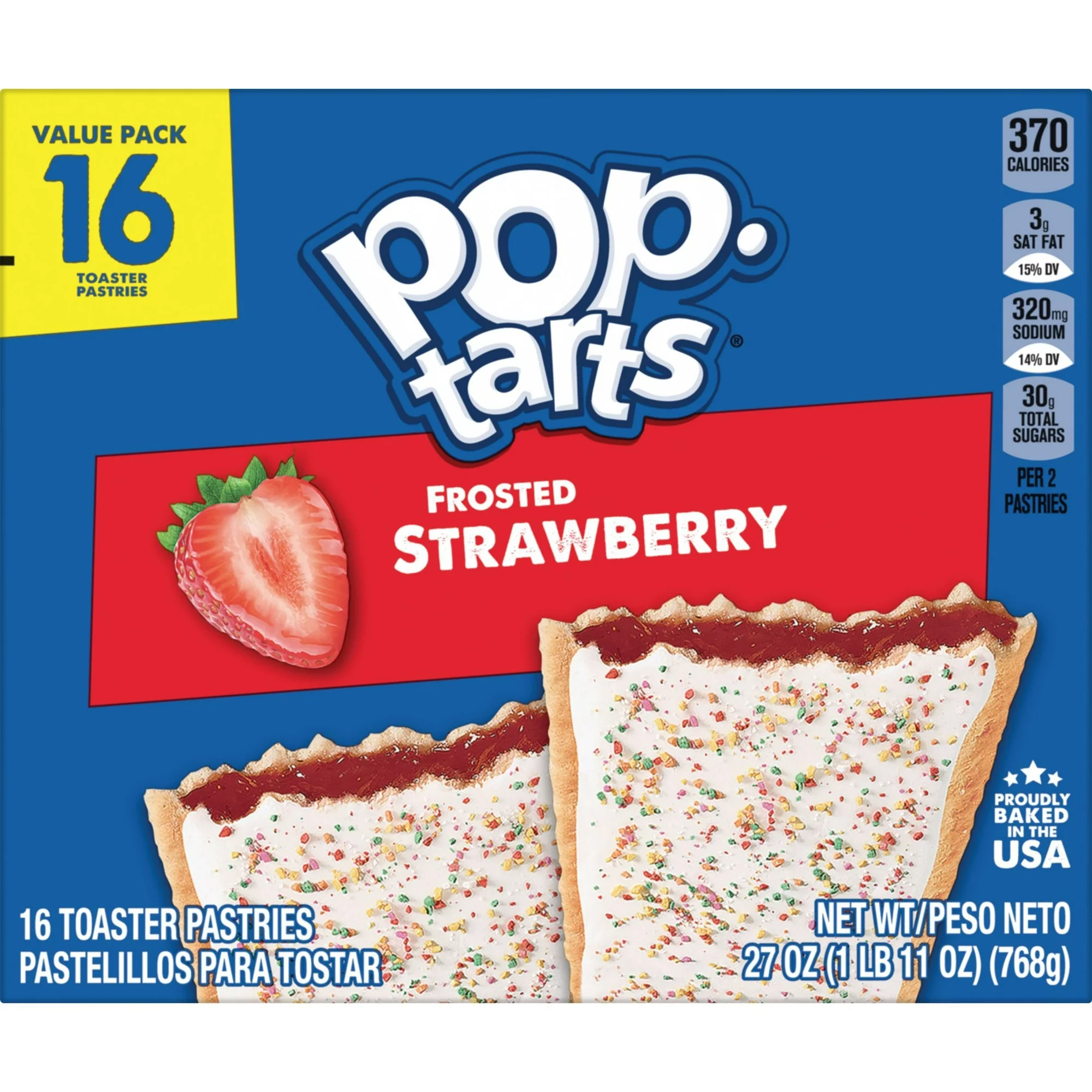 • Includes one, 27oz value-pack box containing 16 toaster pastries; Eight pouches total, two pastries per pouch; Packaged for freshness and great taste